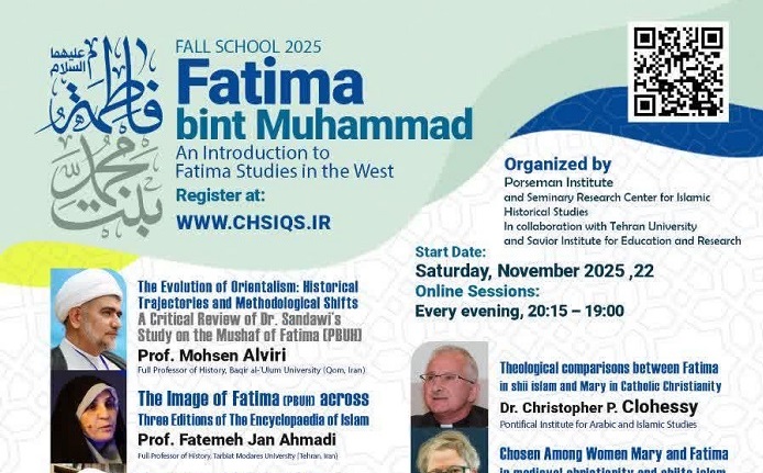 مدرسه پاییزی ۲۰۲۵ با تمرکز بر شخصیت حضرت فاطمه (س) و جایگاه مطالعات مربوط به ایشان در غرب، به صورت آنلاین برگزار میگردد. عنوان این دوره آموزشی «فاطمه بنت محمد (ص): مقدمهای بر مطالعات فاطمه در غرب» اعلام شده است.