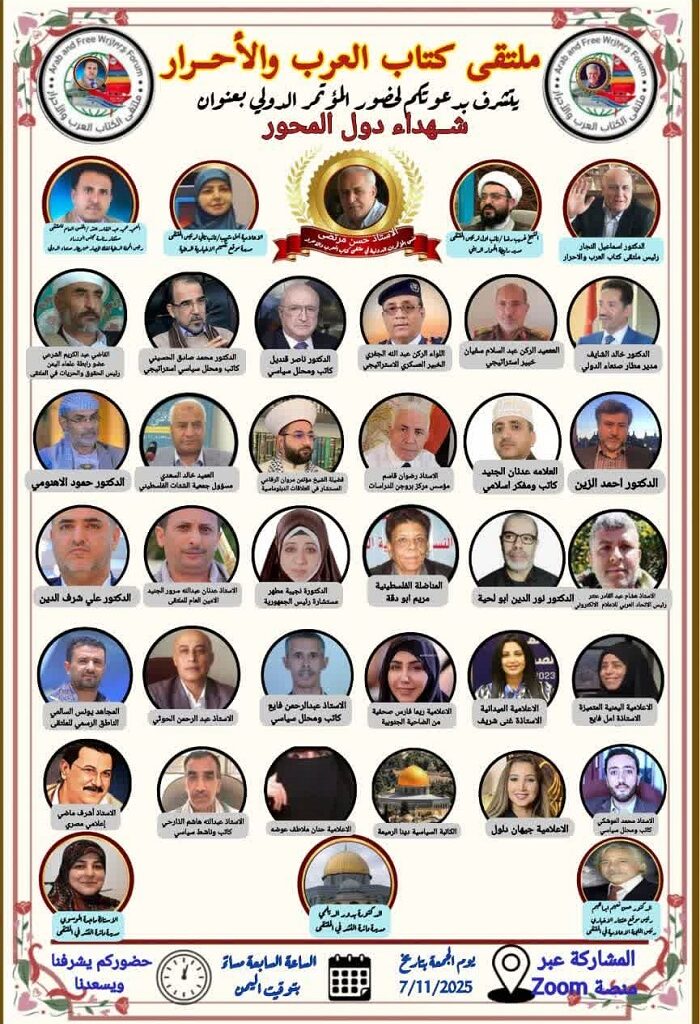 موضوع اصلی این نشست، «تکریم شهدای محور مقاومت و بررسی وضعیت سیاسی جاری در کشورهای یمن، لبنان و سودان» اعلام شده است. این برنامه که در قالب یک وبینار بینالمللی در پلتفرم زوم برگزار میگردد، در تاریخ جمعه ۱۶ آبان ماه ۱۴۰۴ در ساعات پایانی روز (ساعت ۱۹:۳۰ به وقت تهران) برپا خواهد شد.