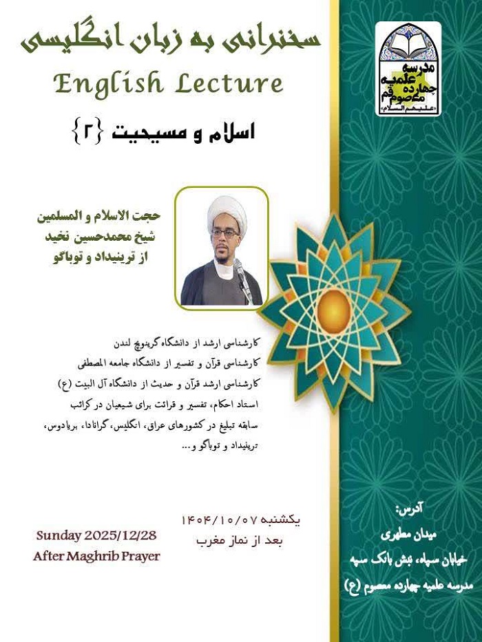 تشکل بینالمللی چهارده معصوم«علیهم السلام» برگزار میکند: «سلسله سخنرانی های هفتگی به زبان انگلیسی» دوره دوم.