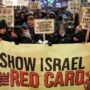 معترضان با شعارهایی مانند «کارت قرمز به اسرائیل» خواستار حذف این رژیم از رویدادهای ورزشی شدند.
