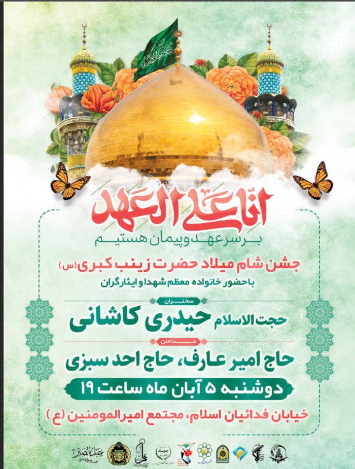 به مناسبت فرخنده میلاد بانوی کربلا، حضرت زینب کبری (سلاماللهعلیها)، مراسم جشنی باشکوه با محوریت بزرگداشت مقام ایشان و با حضور خانوادههای معزز شهدا و ایثارگران، در شهر مشهد برگزار خواهد شد.