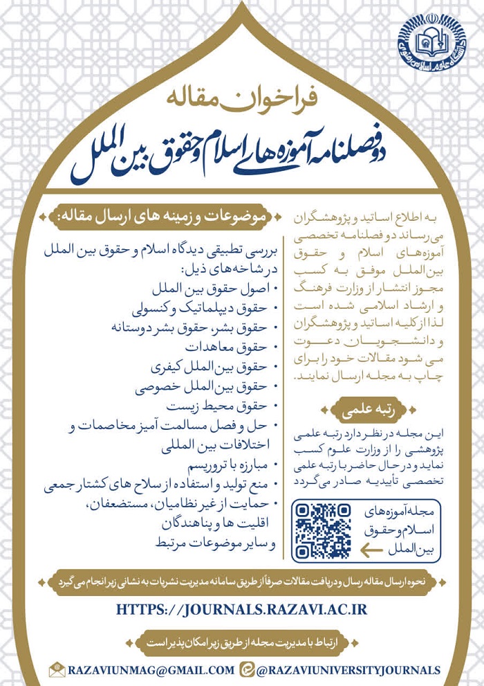 دعوت به همکاری علمی و پژوهشی با نشریه «آموزههای اسلام و حقوق بینالملل»