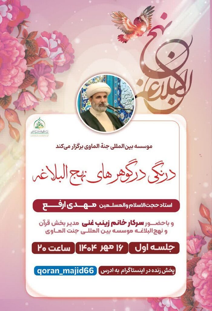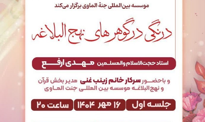 مؤسسه بین‌المللی جنه الماوی برگزار می‌کند: سلسله نشست «درنگی در گوهرهای نهج البلاغه» با تدریس حجت‌الاسلام ارفع