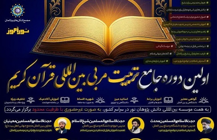 مؤسسه بینالمللی دانشپژوهان نور با استناد به حدیث شریف نبوی «خَیرُکُم مَن تَعَلَّمَ القُرآنَ وَعَلَّمَهُ»، اقدام به برگزاری «اولین دوره جامع تربیت مربی بینالمللی قرآن کریم» کرده است. این دوره آموزشی فرصتی مناسب برای علاقهمندان به تبلیغ و آموزش قرآن در سطح بینالمللی محسوب میشود.