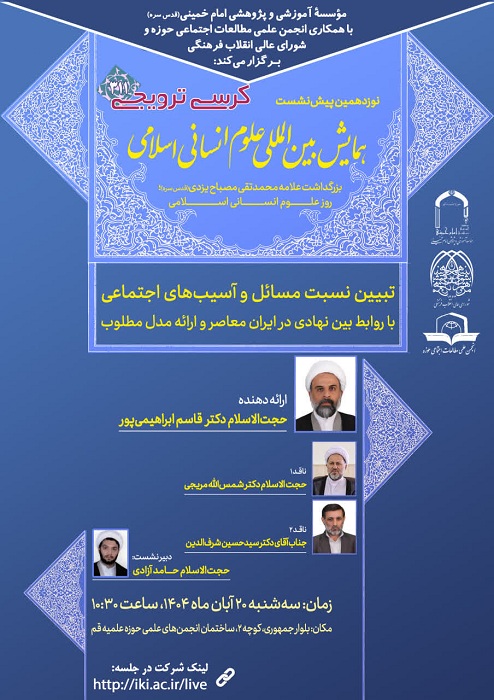 کرسی ترویجی [۳۱۱]: «تبیین نسبت مسائل و آسیبهای اجتماعی با روابط بین نهادی در ایران معاصر و ارائه مدل مطلوب»