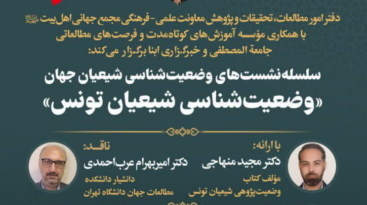 نشست «وضعیتشناسی شیعیان تونس» در قالب سلسله نشستهای وضعیتشناسی شیعیان جهان، روز چهارشنبه ۷ آبان ۱۴۰۴ در مجمع جهانی اهلبیت(ع) برگزار میشود. این برنامه بههمت