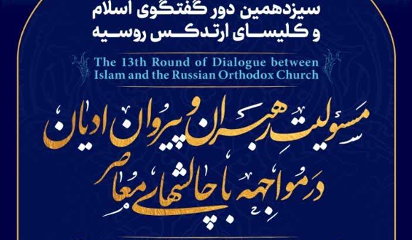 سیزدهمین دوره گفتوگوی دینی اسلام و کلیسای ارتدکس روسیه، با موضوع «مسئولیت رهبران و پیروان ادیان در مواجهه با چالشهای معاصر»، از ۱۸ تا ۲۲ آبان ۱۴۰۴ (۹ تا ۱۳ نوامبر ۲۰۲۵) در تهران برگزار میشود.
